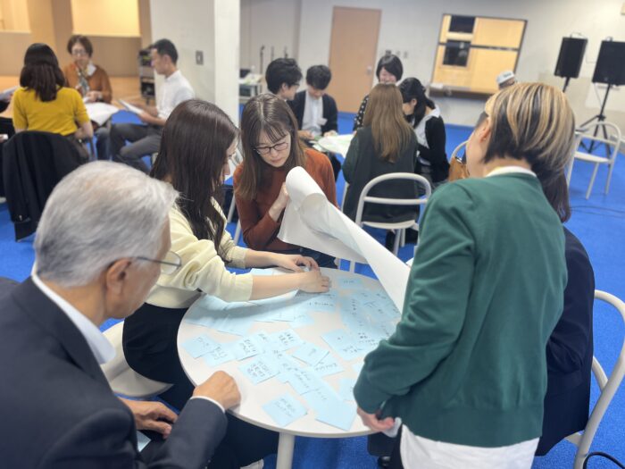 グループワーク形式で、組織設計に「言葉づくり」を活かす手法を体験。ディスカッションからプレゼンテーションまで、クリエイティブエリアの共創空間を広く活用いただきました。