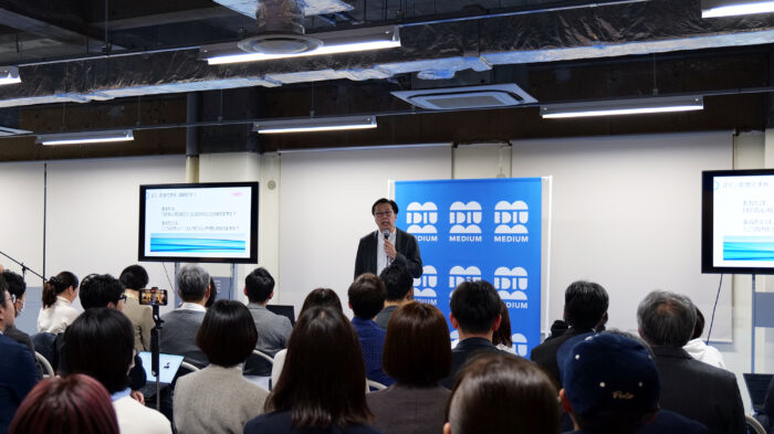 これまではセミナーやワークショップなどで利用されたMEDIUMクリエイティブエリアでしたが、大人数でのカンファレンスとして利用においてもサークル状の舞台は一体感があり、新しい物事が生まれるシーンとしてマッチした様子でした。
